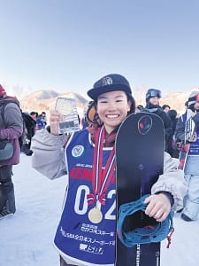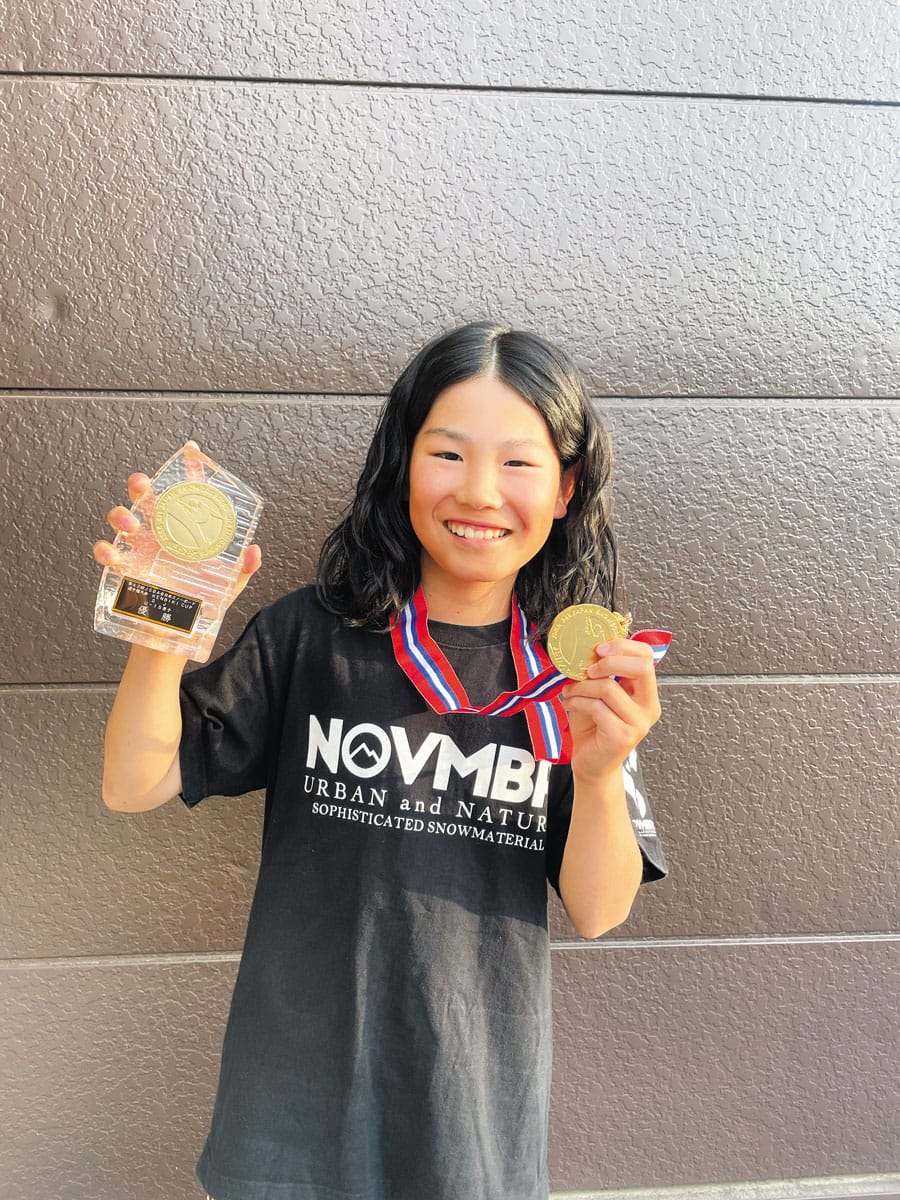 スノーボードは毎年の道具の買い替えや遠征費など、とてもお金がかかりますが、思い切り活動させてくれる両親にはとても感謝しています。大会や練習のための遠征は 母親が運転し、車中泊で移動。遠征先でも工夫して温かいご飯を作ってくれたり、遠くまで送迎してくれるのでとてもありがたいです。大会に出場するため学校を欠席することも多いのですが、先生方が協力してくださり、特に全日本大会の中継を観ながら担任の宮島朋花先生やクラスみんなが応援してくれたのはとてもうれしかったです。 次の目標は、いろいろな大会で表彰台に上がることと、プロ資格を取得しジュニアの世界大会「ワールドルーキーツアー」に出場すること。またユーチューブのスノーボードチャンネル「WOW SNOWBOAD」のDOGGYさん(プロスノーボーダー笠原啓ニ郎さん)が憧れの存在なので、プロになって「WOW」に出ることが夢です。