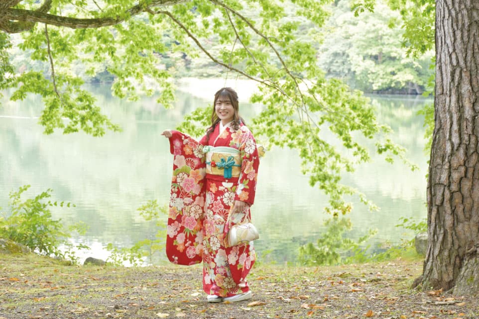 入社8年。成人式や七五三など、お客様の節目を着付けや写真で綺麗にカタチとして残せるよう日々奮闘しています。子どもがいますが、まわりのスタッフに助けてもらいやすい環境なので子育てと両立できています。