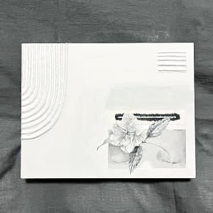 初めて個展を開催した頃は内省的な作品が多かったのですが、描きたい形が少しずつ変わってきていることを自分自身でも感じています。テーマにしているのは「心」。侘び寂び、空白や余白を取り入れ作品自体に力があるものを目指しています。描きたいことは自然への畏敬の念。 以前は扱いやすいアクリル絵の具を使用していましたが、最近は環境に良いものを選び、炭や膠(にかわ)、胡粉といった自然由来のものを使っています。大切に扱わないと描けないので、真面目に真剣に、そして丁寧に敬意を持って制作しています。 夢は絵を通して地域に関わり、貢献すること。現在は内山和紙や立岩和紙など長野県の紙と墨を使った制作にも取り組んでいます。ここで生まれたことに誇りを持ち、地に足をつけ、ゆっくりと自分にできることを実行していきたいです。